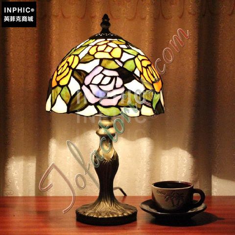 田園玫瑰花彩色玻璃餐廳桌裝飾手工藝術品檯燈賀禮