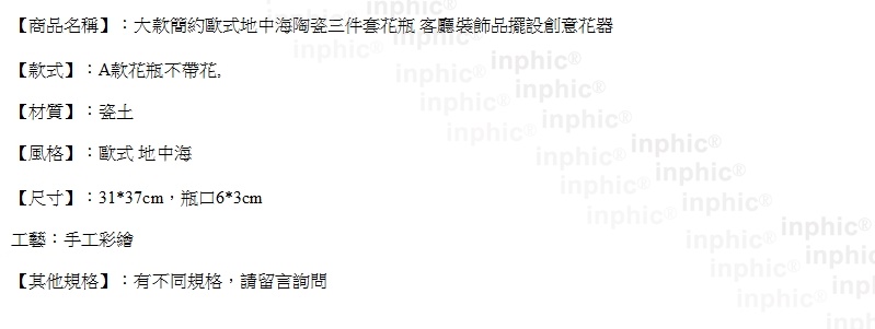 大款簡約歐式地中海陶瓷三件套花瓶 客廳裝飾品擺設創意花器-A款花瓶不帶花